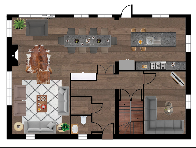 With its oversized windows, cozy fireplace, and luxurious leather seating, this living room is the ultimate spot to relax, unwind, and spend quality time with friends and family.